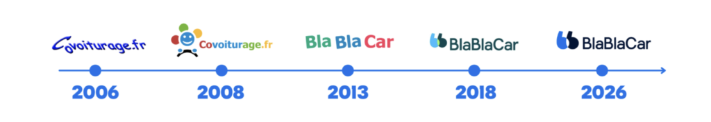 Quatrième évolution depuis sa création en 2006 sous le nom de Covoiturage.fr, ce rebranding s’inscrit davantage dans une logique de continuité que de rupture. La marque conserve ses éléments distinctifs les plus reconnaissables, à commencer par son nom, son logo et sa couleur bleue emblématique, tout en modernisant son système graphique pour mieux refléter son positionnement multimodal et international.