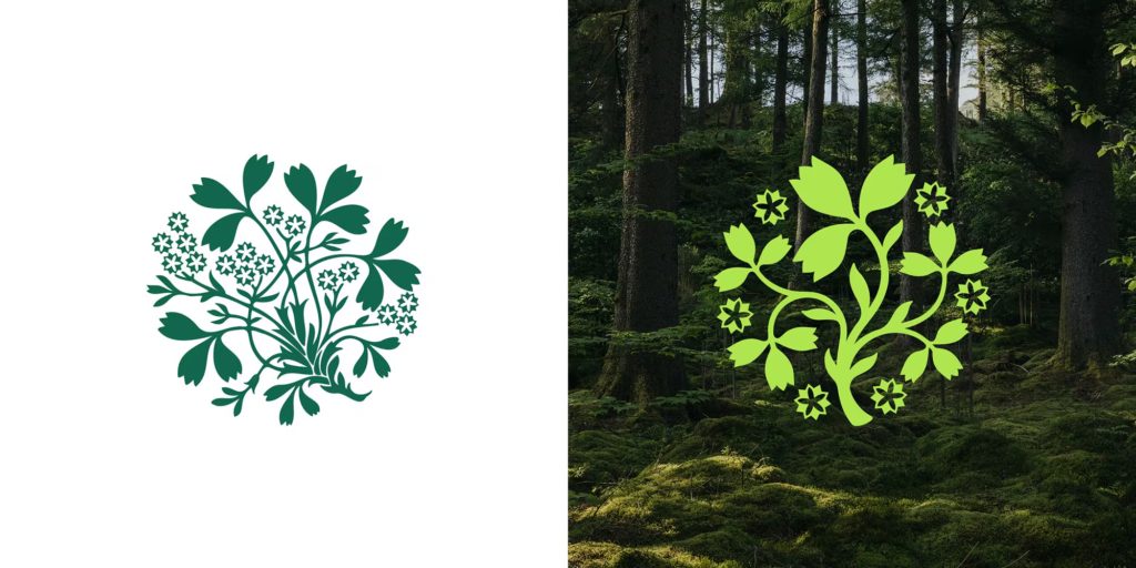 L’ancien emblème, trop complexe pour l’ère numérique, a été redessiné. Désormais, la plante grandit à l’intérieur d’un cercle : la tige principale ondule verticalement, accompagnée symétriquement par d’autres pousses, suggérant un écosystème en expansion. Ce symbole gagne en cohérence grâce à un traitement harmonieux de l’épaisseur des traits et à des angles adoucis, rendant l’ensemble plus lisible et accueillant sur tous les supports, du mobile à la signalétique.