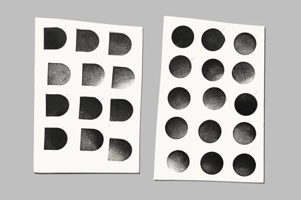 La structure du logotype, pensée pour exploiter pleinement les contraintes du médium, favorise des formes simples, compactes et pleines, obtenues naturellement par l’empreinte. Résultat : un système de lettres réparties sur deux rangées, dont l’équilibre est subtilement dynamisé par des décalages latéraux, à gauche comme à droite. Un jeu typographique qui évoque l’instabilité joyeuse du geste manuel, et rend hommage à la beauté de l’imparfait.