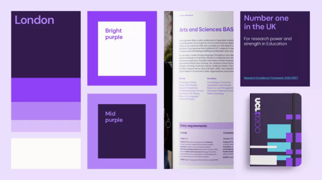 Avec cette palette distinctive et structurée, UCL se dote d’un système visuel plus identifiable et adaptable, capable d’unifier l’ensemble de ses communications tout en affirmant une présence plus forte dans l’univers très concurrentiel de l’enseignement supérieur.
